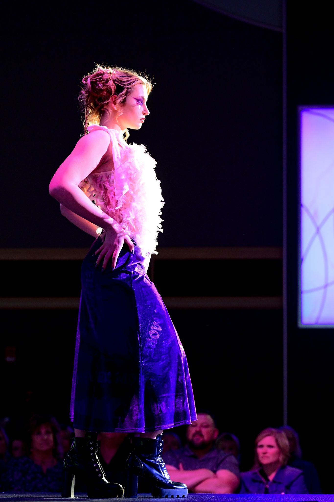 Professional photos were then taken and practice runs began. Designers not only made their clothing and gave direction for hair and makeup, but also chose lighting and music to help convey the vibe of their collection.