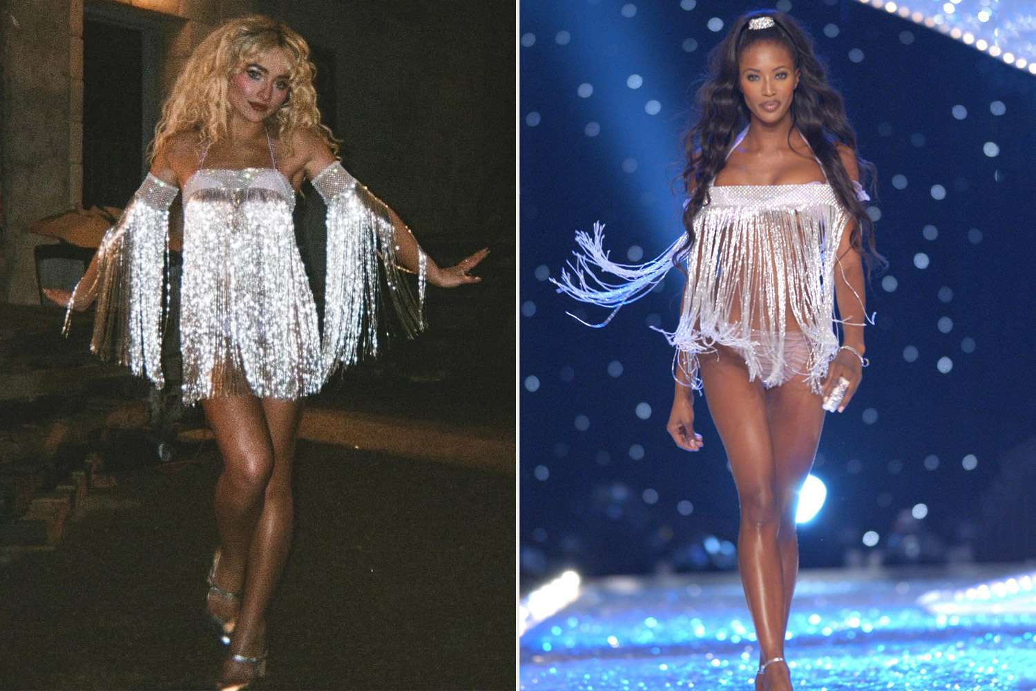 By the end, we see Carpenter dancing in vintage lingerie, gleeful with her own supposed corruption. She flaunts her looks in a cornfield and dances in a fringe-filled, silver and sparkly Victoria’s Secret lingerie set—one that was originally modeled by Naomi Campbell in 2003, according to an article from People.